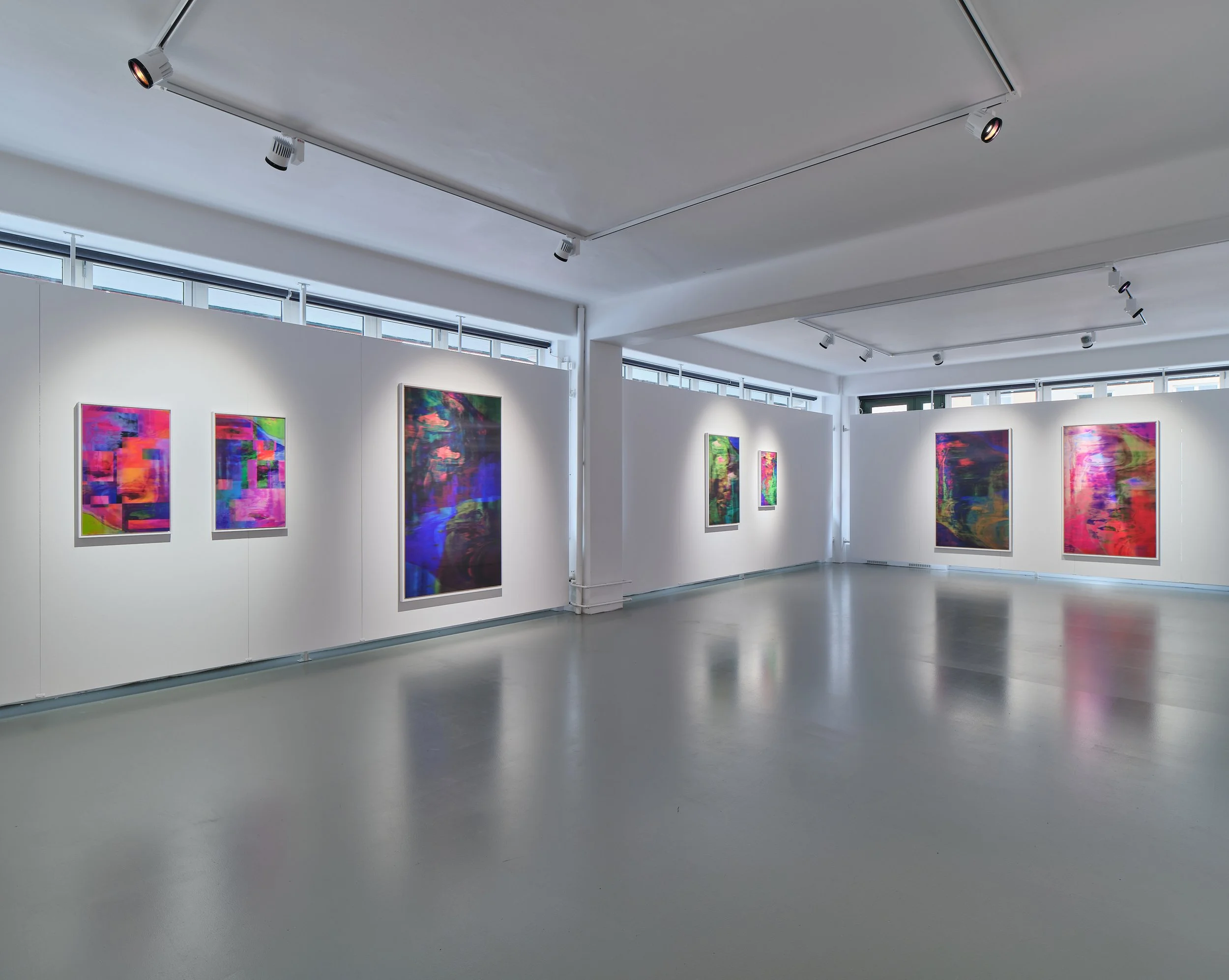 Rastifard uses original works in the form of paintings, graphics and photographs to create her technologically advanced worlds of images, where these originals are intertwined into a whole. Like the traditional Persian geometric patterns, the motifs repeat, overlap and coincide with each other. Her work is characterized by precision and a deep interest in the various optical phenomena that characterize her abstract landscape. In this way, her focus is reminiscent of the scientist's; there is a fundamental interest in the many ways in which light is reflected, refracted and bent. At the same time, her process is equally emotional, philosophical and internal – introspection and a meditative approach serve as key words in the creative process.